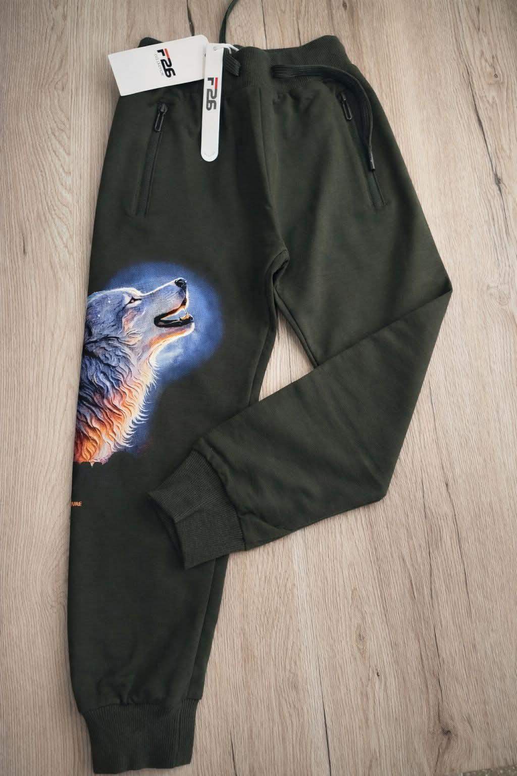 Te spodnie z efektownym nadrukiem wilka to idealna propozycja dla dzieci, które lubią wyróżniać się z tłumu 👖