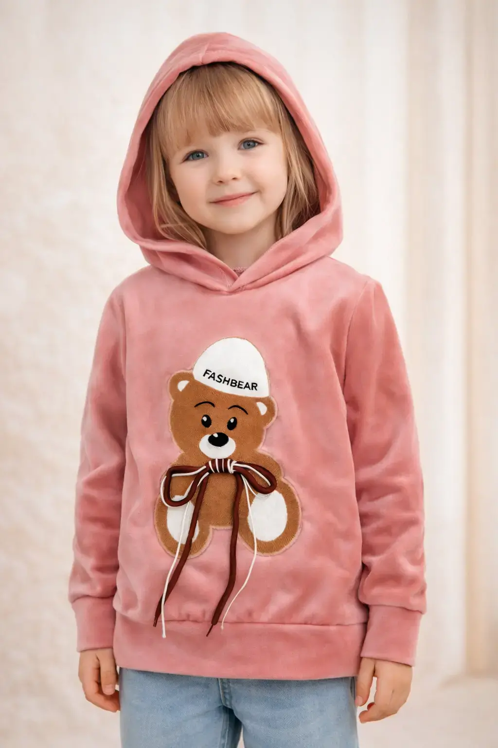 🧸 Bluza welurowa z uroczym misiem